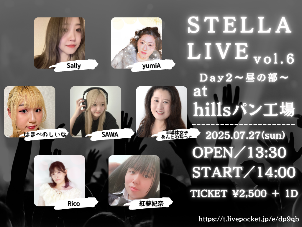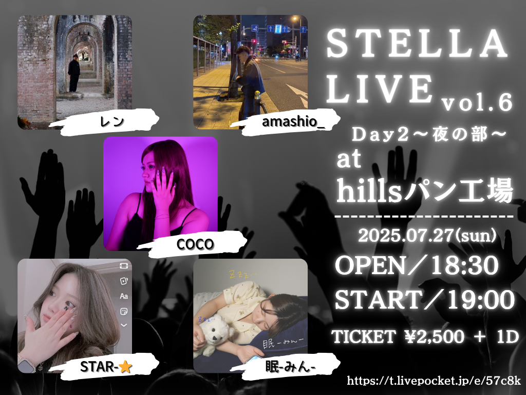 ステラミュージック主催『stella live vol.6』が7月26日・27日に梅田Hillsパン工場にて開催決定。